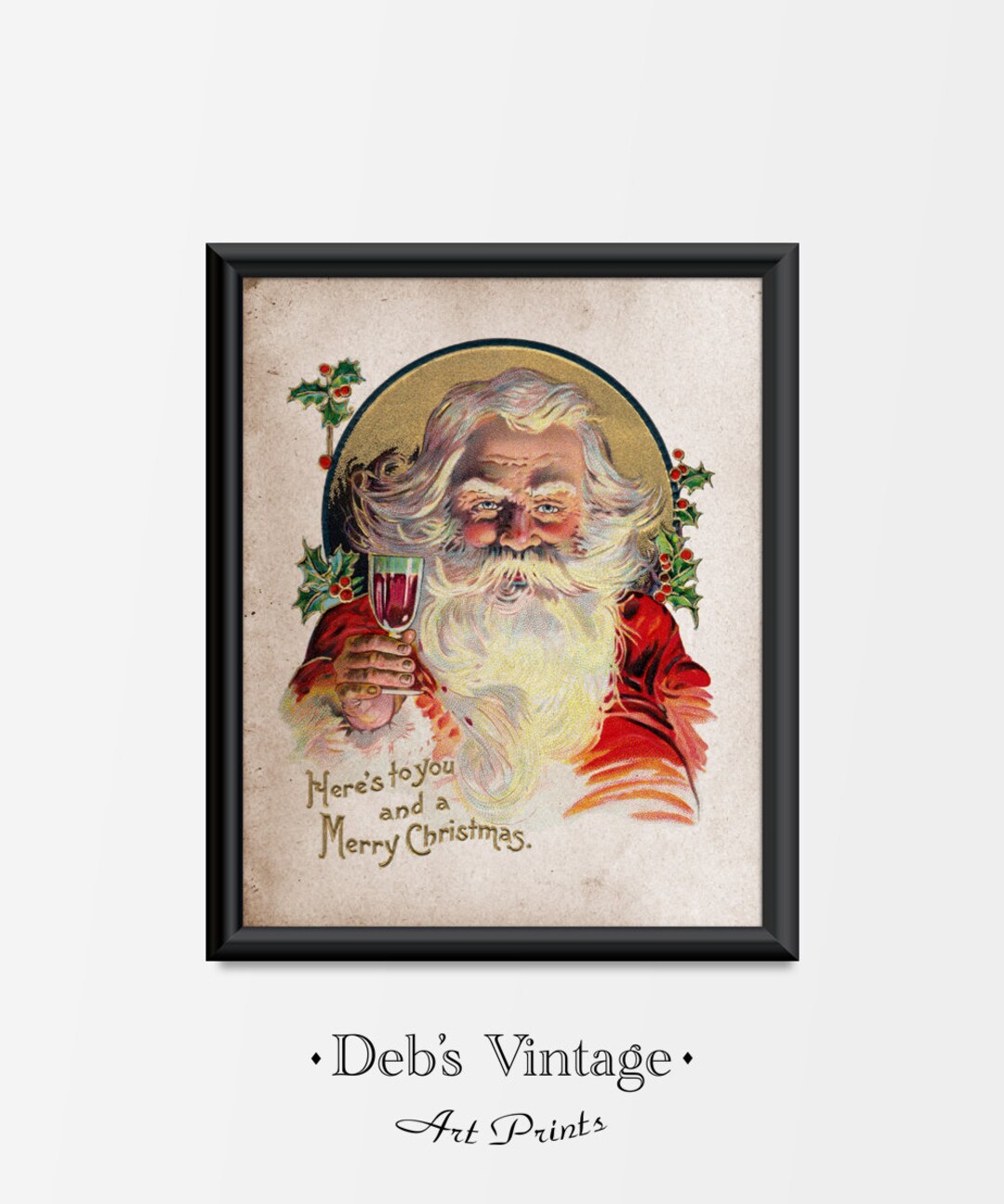Santa Claus Vintage Art Print Wine Party Holiday Decoration Etsy
